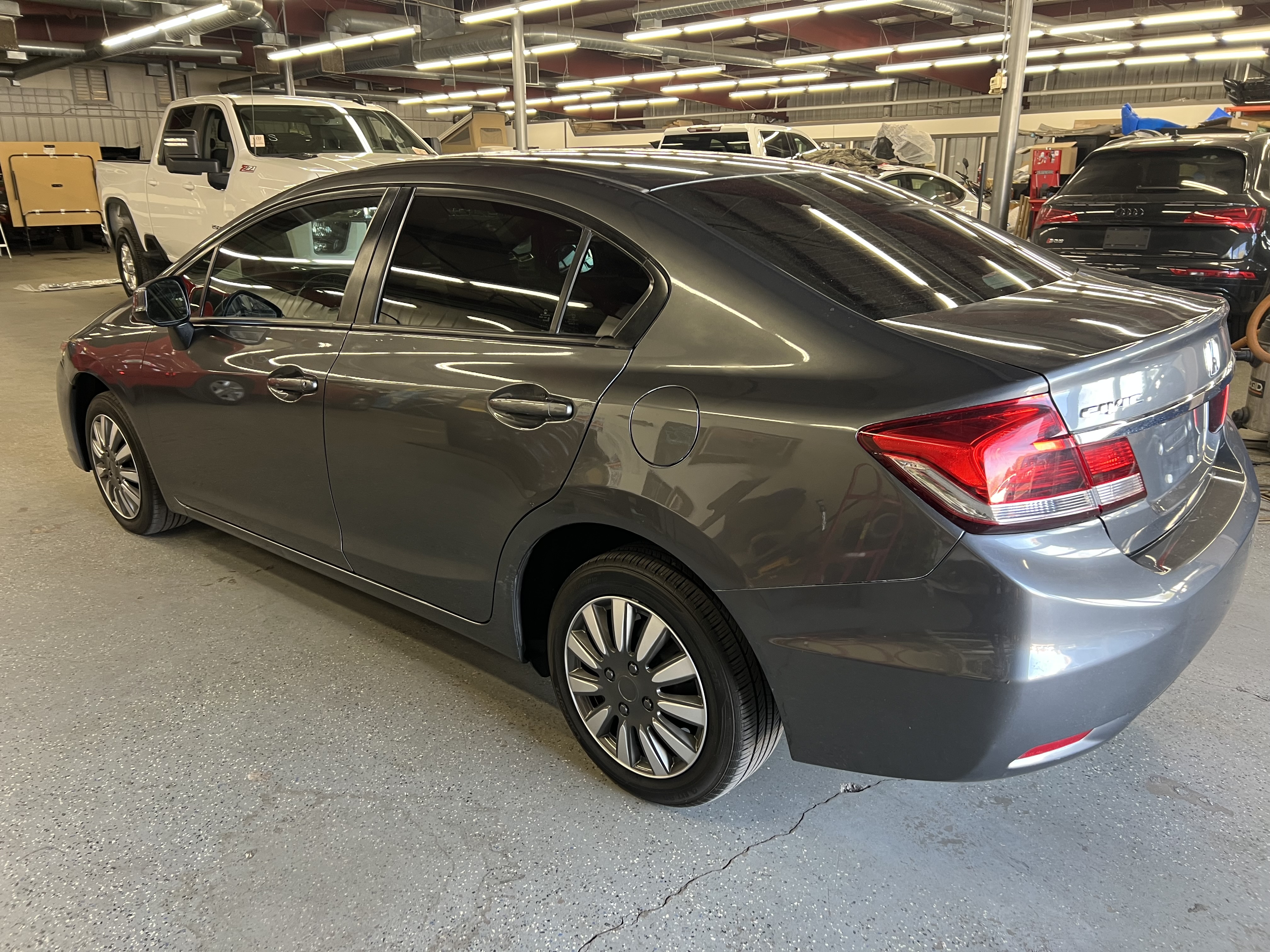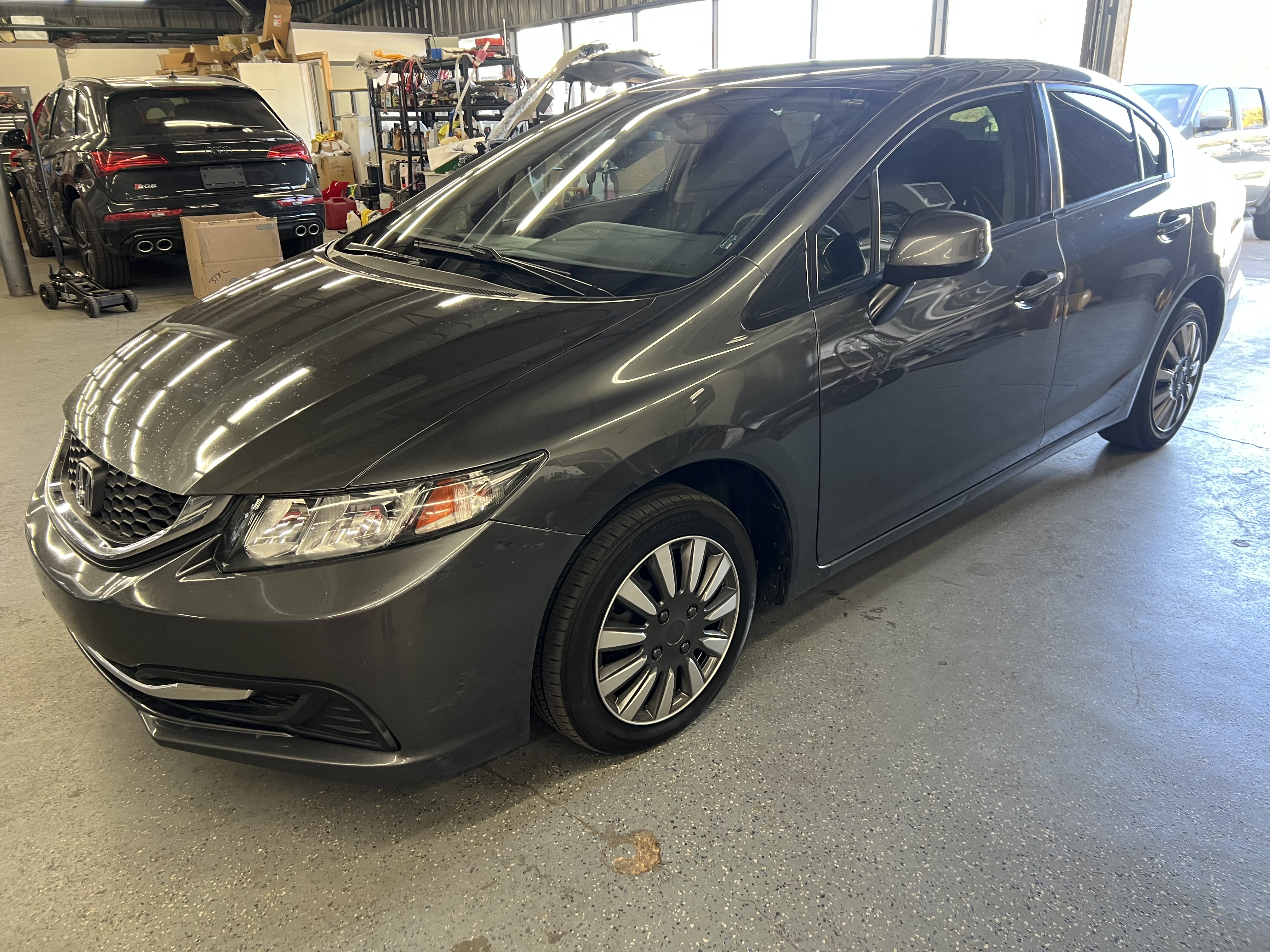 Expand View-more 2013 Honda Civic LX Sedan 5-Speed AT ABS Brakes, AM/FM Radio, Air Conditioning, Automatic Headlights, see more $7,497 internet price Mileage: 101,264 Engine: 1.8L L4 SOHC 16V Transmission: Automatic Interior color: Exterior color: CHARCOAL Fuel type: VIN: 2HGFB2F59DH302179 Doors: 4 Door Stock number: 302179 Fuel economy: 28/39 Email Us From: Your message: Hello, my name is and I'm writing you today to learn more about the 2013 Honda Civic LX Sedan 5-Speed AT listed for $7,497.00. I live in the area and I would like to hear back from you soon and learn more about this vehicle. Please call me at at your earliest convenience. Send Email Vehicle Description Standard Features Optional Features What is my Monthly Payment ? Have a Trade-In? Vehicle Description Standard Features ABS Brakes AM/FM Radio Air Conditioning Automatic Headlights CD Player Child Safety Door Locks Cruise Control Daytime Running Lights Driver Airbag Electronic Brake Assistance Electronic Parking Aid Front Air Dam Front Side Airbag Interval Wipers Keyless Entry Passenger Airbag Power Adjustable Exterior Mirror Power Door Locks Power Windows Rear Window Defogger Second Row Folding Seat Side Head Curtain Airbag Steel Wheels Steering Wheel Mounted Controls Tachometer Telescopic Steering Column Tilt Steering Tilt Steering Column Tire Pressure Monitor Traction Control Trip Computer Trunk Anti-Trap Device Vehicle Anti-Theft Vehicle Stability Control System Optional Features Alloy Wheels Cargo Area Tiedowns Cargo Net Electrochromic Interior Rearview Mirror First Aid Kit Fog Lights Rear Spoiler Remote Ignition Splash Guards What is my Monthly Payment ? What is my monthly payment? Price Down Payment Interest Rate (%) Term (months) 12 24 36 48 60 72 / month CALCULATE *Calculation is an estimation and doesn't include taxes and fees. Looking to trade in a vehicle towards this purchase? Fill out our contact form below with your vehicle information and we'll contact you to to provide an evaluation. From: First Name: Last Name: Phone: Message: Year: Make: Model: Submit 2013 Honda Civic LX Sedan 5-Speed AT ABS Brakes,AM/FM Radio,Air Conditioning,Automatic Headlights,